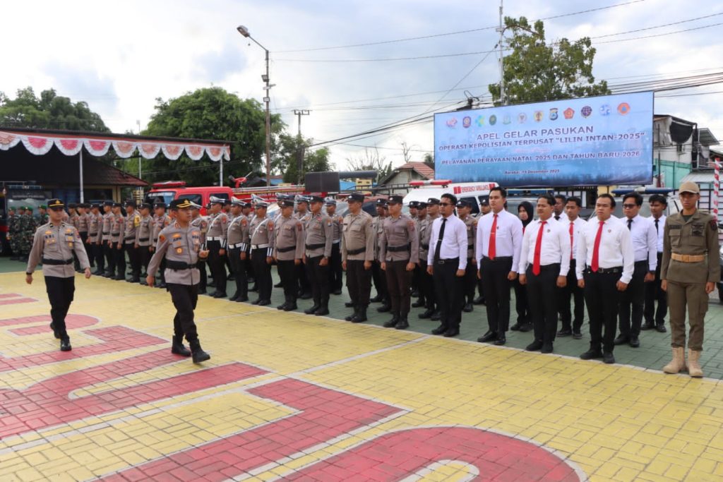 BARABAI – Polres Hulu Sungai Tengah (HST) menggelar Apel Gelar Pasukan Operasi Kepolisian Terpusat Lilin Intan 2025 dalam rangka pengamanan Perayaan Natal 2025, malam pergantian Tahun Baru 2025–2026, serta pengamanan kegiatan rutin keagamaan 5 Rajab, bertempat di halaman Mako Polres HST, Jumat (19/12/2025) sore.