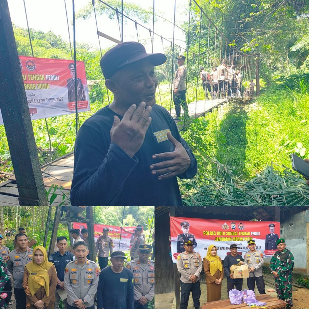BARABAI – Dalam rangka memperingati Hari Bhayangkara ke-80, Polres Hulu Sungai Tengah (HST) melaksanakan pembangunan Jembatan Merah Putih di Desa Murung Taal, Kecamatan Labuan Amas Selatan, yang dimulai pada Senin (13/4/2026).