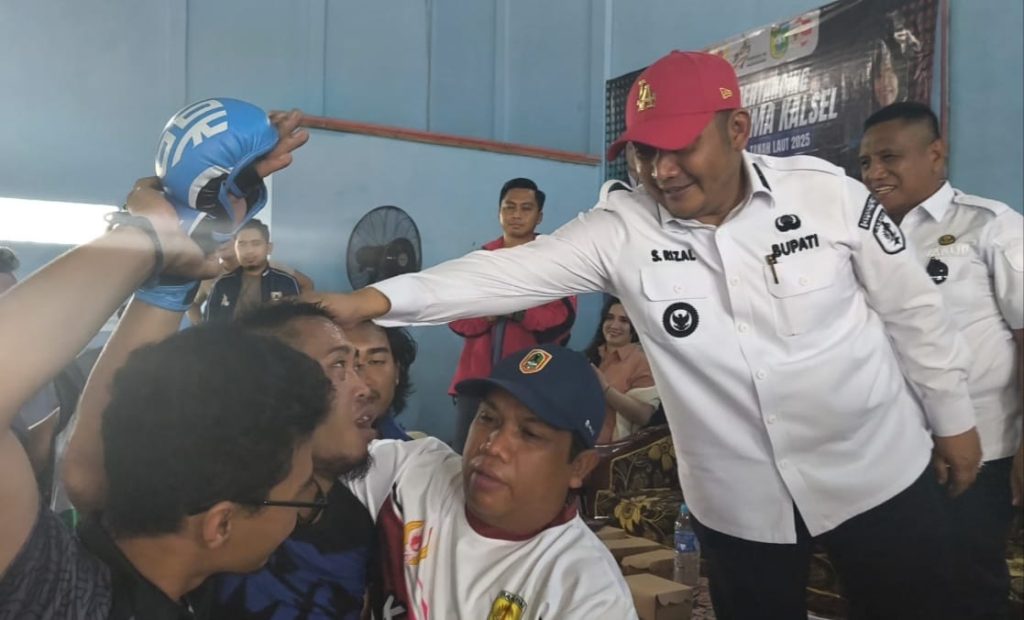 “Alhamdulillah, hari ini Ulun bisa berhadir di sini, sekaligus bertatap muka dengan para atlet kita — para petarung sekaligus pejuang kita,” ujar Samsul Rizal penuh semangat.