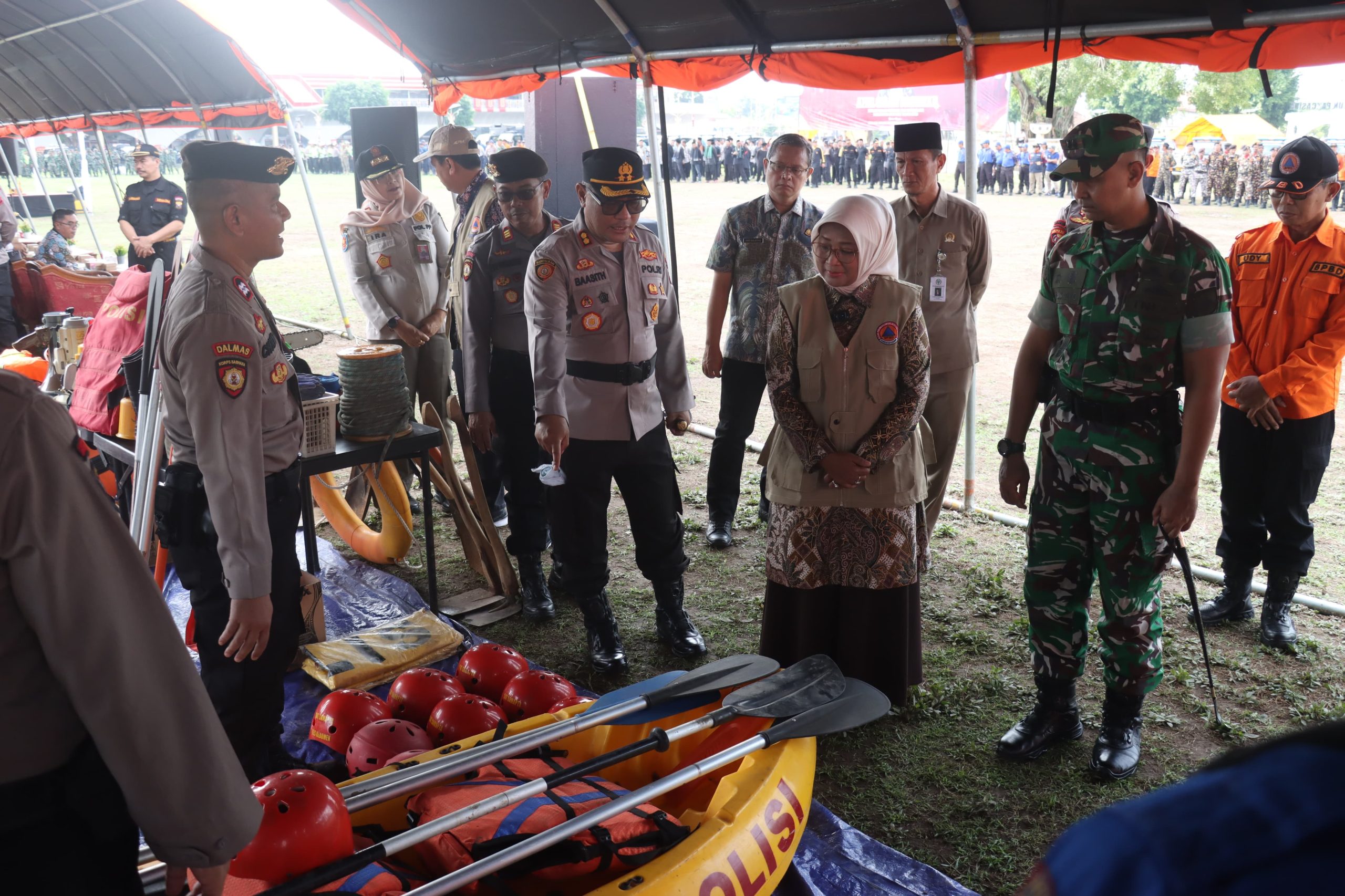 Setelah melaksanakan apel, Forkopimda melakukan pengecekan peralatan pendukung tanggap bencana, serta mengecek kesiapan personel hingga relawan yang siap digerakkan jika bencana benar-benar terjadi di Kebumen.