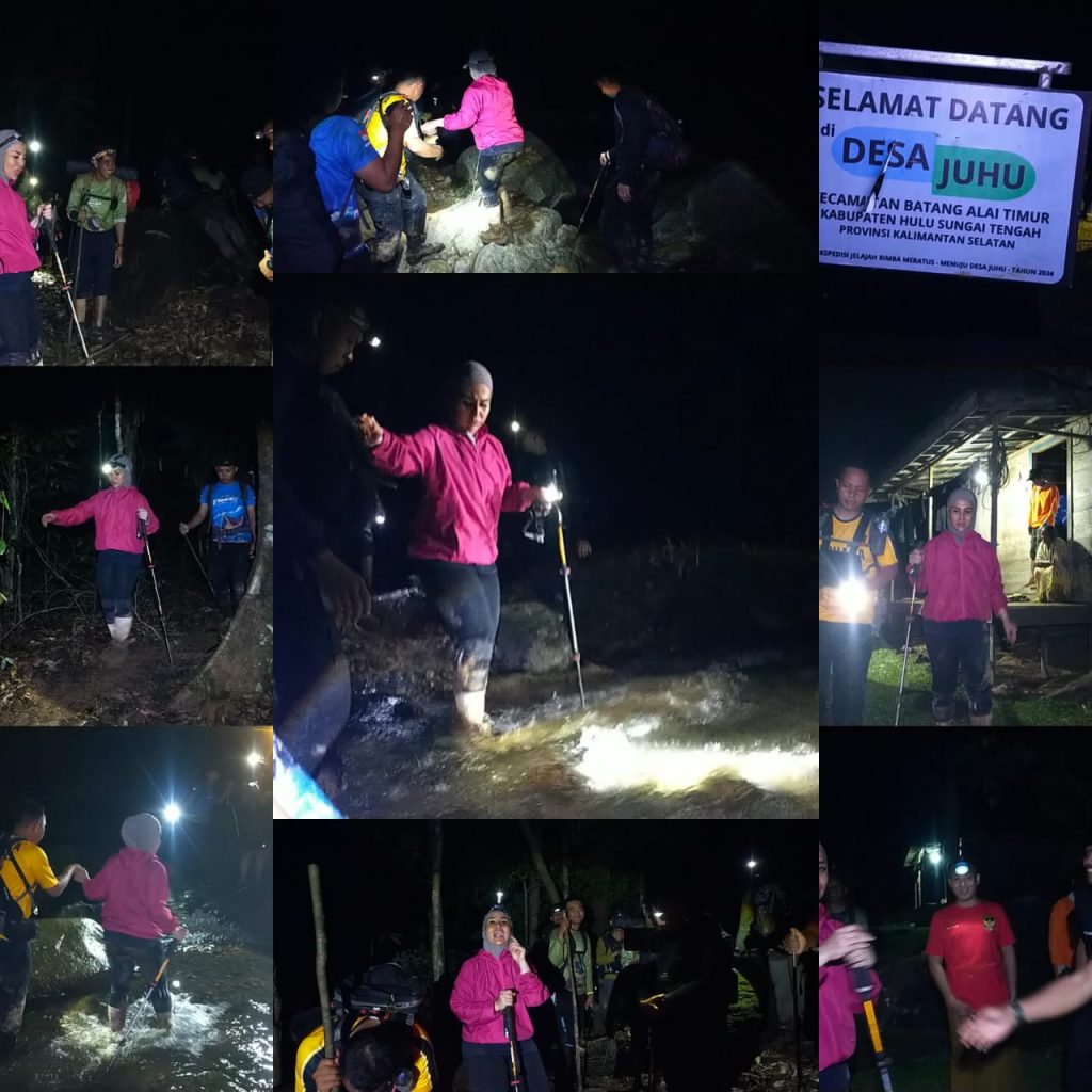 Meski menghadapi medan berat, Tim Ekspedisi Mama Deden tetap kompak dan saling mendukung agar perjalanan berlangsung aman. Rombongan akhirnya tiba di Desa Juhu pada pukul 10.30 WITA. Kegembiraan terpancar ketika dari kejauhan tampak cahaya senter tim pembuka yang memberikan sinyal di jembatan Desa Juhu menjadi tanda bahwa tujuan hampir dicapai dan semangat kembali menyala.