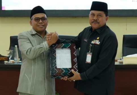 Dalam kesempatan tersebut, Wabup Gusti secara simbolis menyerahkan dokumen Raperda kepada Ketua DPRD HST H Pahrijani.