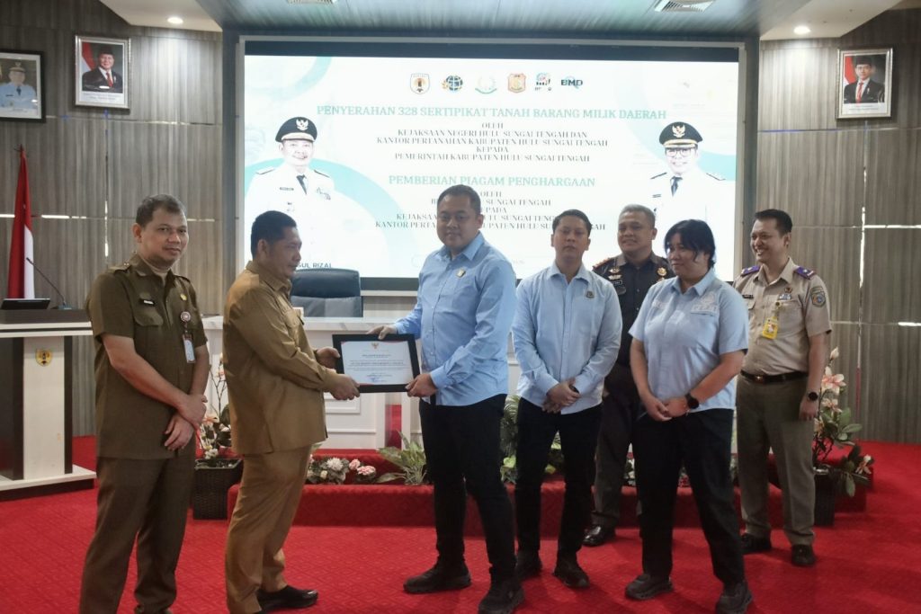 Penyerahan sertifikat tersebut merupakan hasil sinergi antara Pemerintah Daerah, Kantor Pertanahan Kabupaten Hulu Sungai Tengah, dan Kejaksaan Negeri Hulu Sungai Tengah sebagai pendamping hukum.