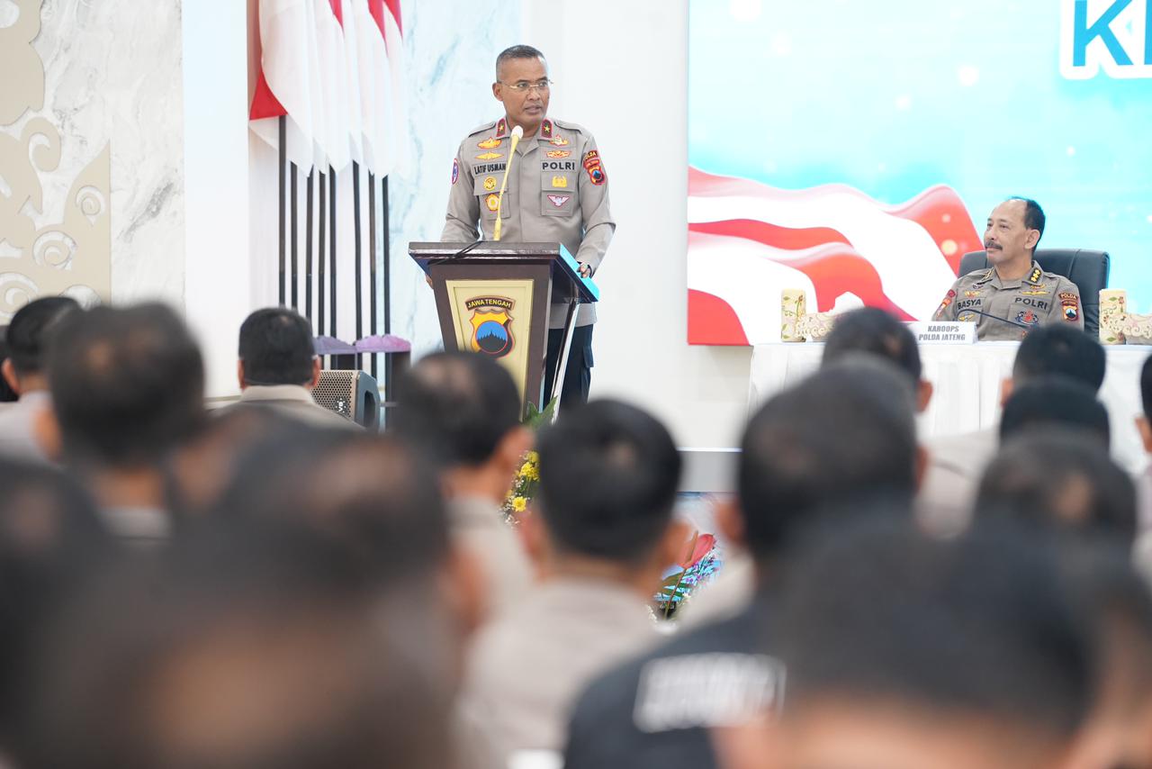 POLDA JATENG NEWS FAKTA HUKUM DAN HAM CO lD—-Kepolisian Daerah Jawa Tengah mematangkan kesiapan pengamanan Hari Raya Idul Fitri 1447 H melalui kegiatan Latihan Pra Operasi (Lat Pra Ops) Terpusat dengan sandi “Ketupat Candi 2026”. Kegiatan yang digelar di Gedung Borobudur Mapolda Jawa Tengah pada Rabu (11/3/2026) tersebut dipimpin langsung oleh Wakapolda Jawa Tengah, Brigjen. Pol. Dr. Latif Usman, S.I.K., M. Hum didampingi Karo Ops, Dirlantas, Kabidhumas, serta dihadiri para Pejabat Utama Polda Jateng dan pejabat utama Polres jajaran.