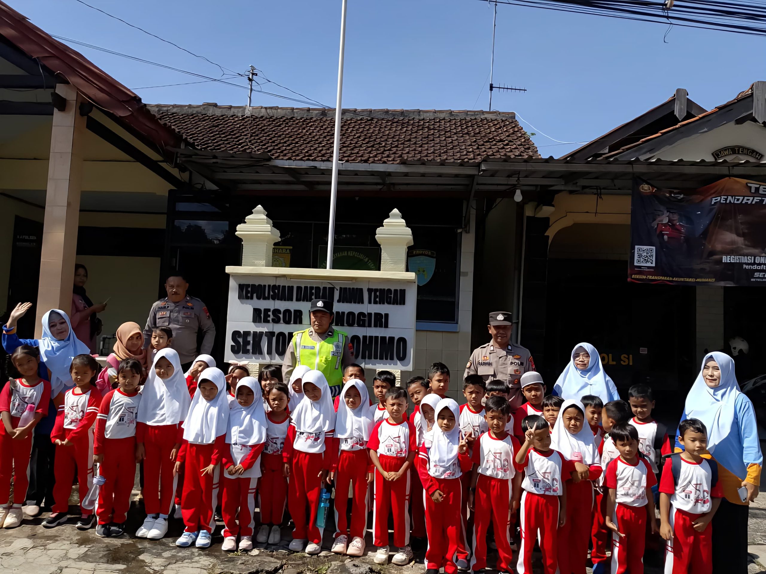 Kegiatan yang berlangsung mulai pukul 08.00 hingga 09.00 WIB tersebut diterima oleh Kanit Binmas Polsek Slogohimo Aipda Edi Sulistyo, S.H., mewakili Kapolsek Slogohimo IPTU Marman, S.H. Hadir dalam kegiatan itu Kepala TK Pembina Slogohimo Wartila Sari, S.Pd., para guru pendamping, serta 35 siswa-siswi.