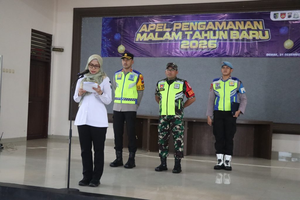 Dalam amanatnya, Bupati Demak Eisti’anah menyampaikan bahwa apel pengamanan merupakan wujud nyata komitmen dan kesiapsiagaan seluruh pihak dalam memberikan perlindungan, rasa aman, dan kenyamanan kepada masyarakat Kabupaten Demak dalam menyambut malam pergantian tahun.