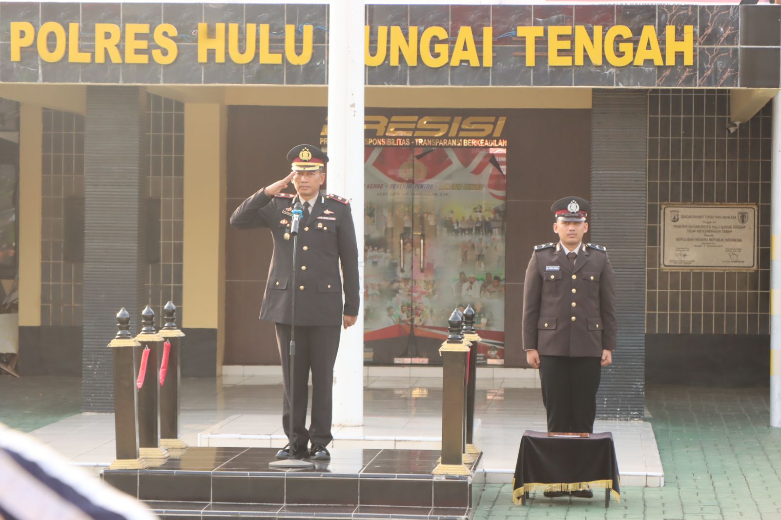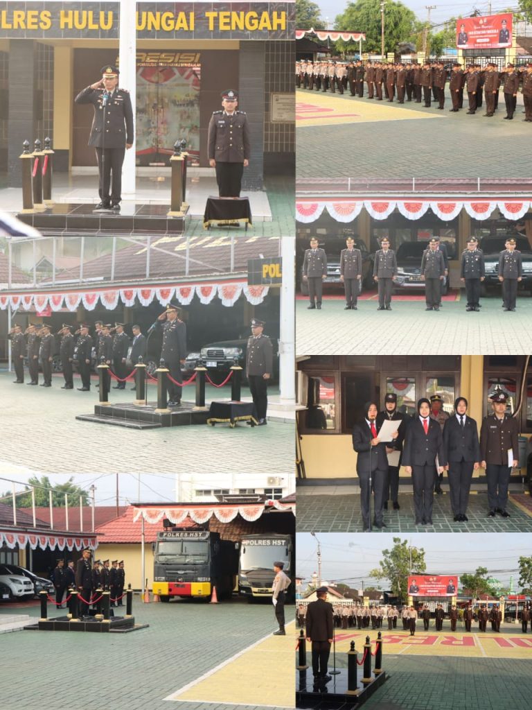 Kapolres HST AKBP Jupri JHP Tampubolon, S.I.K., M.Si., pada kesempatan ini diwakili oleh Wakapolres HST Kompol Saparyanto, S.H., M.Si., yang bertindak selaku inspektur upacara. Upacara turut diikuti oleh para Pejabat Utama Polres HST, para Kapolsek jajaran, serta seluruh personel Polres HST.