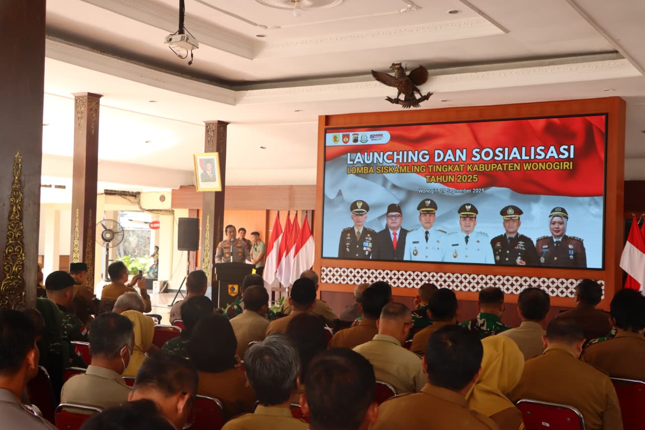 WONOGIRI, NEWS FAKTA HUKUM DAN HAM CO lD—-Polres Wonogiri menginisiasi pelaksanaan Lomba Siskamling Tingkat Kabupaten Wonogiri Tahun 2025 yang resmi dilaunching pada Senin (29/9/2025) di Pendopo Rumah Dinas Bupati Wonogiri. Acara dihadiri sekitar 80 peserta dari unsur Forkopimda, OPD, camat, hingga perwakilan ormas dan OKP.