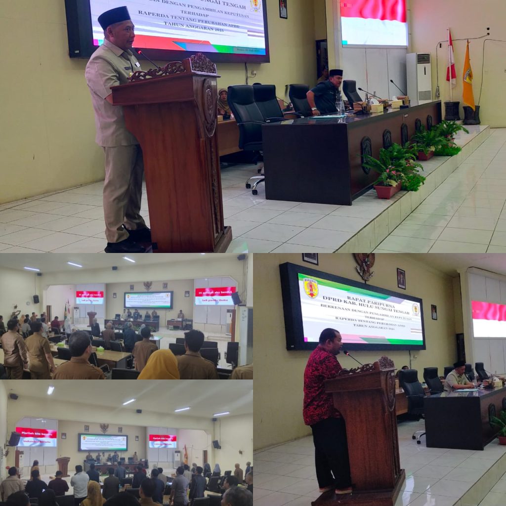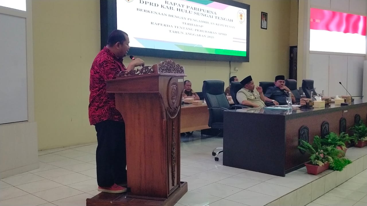 Dewan Perwakilan Rakyat Daerah (DPRD) Kabupaten Hulu Sungai Tengah (HST) kembali menggelar Rapat Paripurna dengan agenda pengambilan keputusan terhadap Rancangan Peraturan Daerah (Raperda) tentang Perubahan Anggaran Pendapatan dan Belanja Daerah (APBD) Tahun Anggaran 2025.