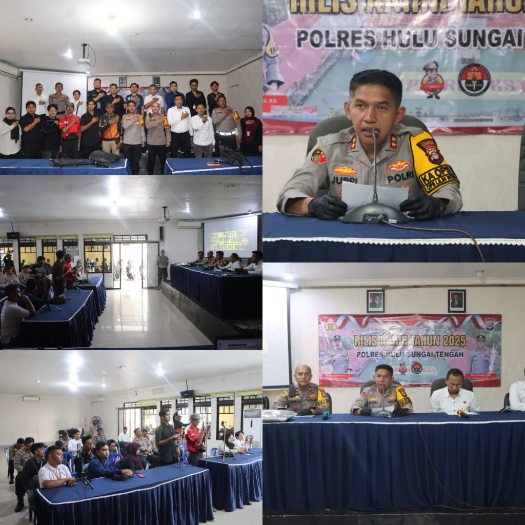 BARABAI – Kepolisian Resor Hulu Sungai Tengah (Polres HST) memaparkan ringkasan kinerja selama tahun 2025 melalui konferensi pers Rilis Akhir Tahun yang mencakup data kriminalitas, kecelakaan lalu lintas, tindak pidana narkoba, serta sejumlah kasus menonjol.