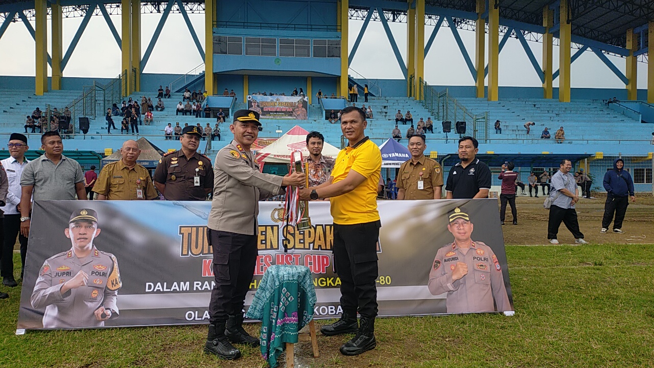 Kapolres HST turut menyampaikan apresiasi kepada Pemerintah Kabupaten HST, Askab PSSI, panitia, sponsor, serta seluruh elemen masyarakat yang telah mendukung terselenggaranya kegiatan ini.